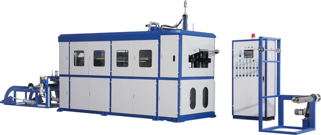2.整機(jī)集送片、加熱、拉伸、成型、切邊一次性完成。