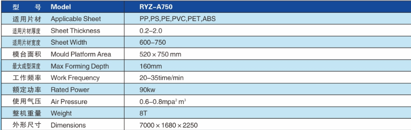 RYZ-750 Series of Full-automatic Hydraulic CUP-making Machine developed by our company is a fully automatic plastic container’s forming machine which features in high speed and high efficiency. This machine is applicable to the production of plastic sheet material, such as PS, PP, PVC, PET and ABS